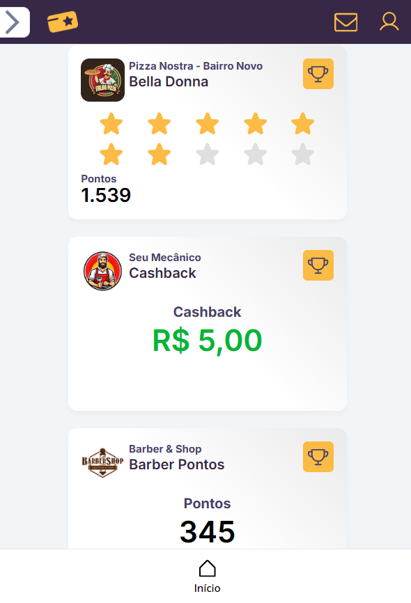➡️ Registro de pontos, carimbos e cashback.